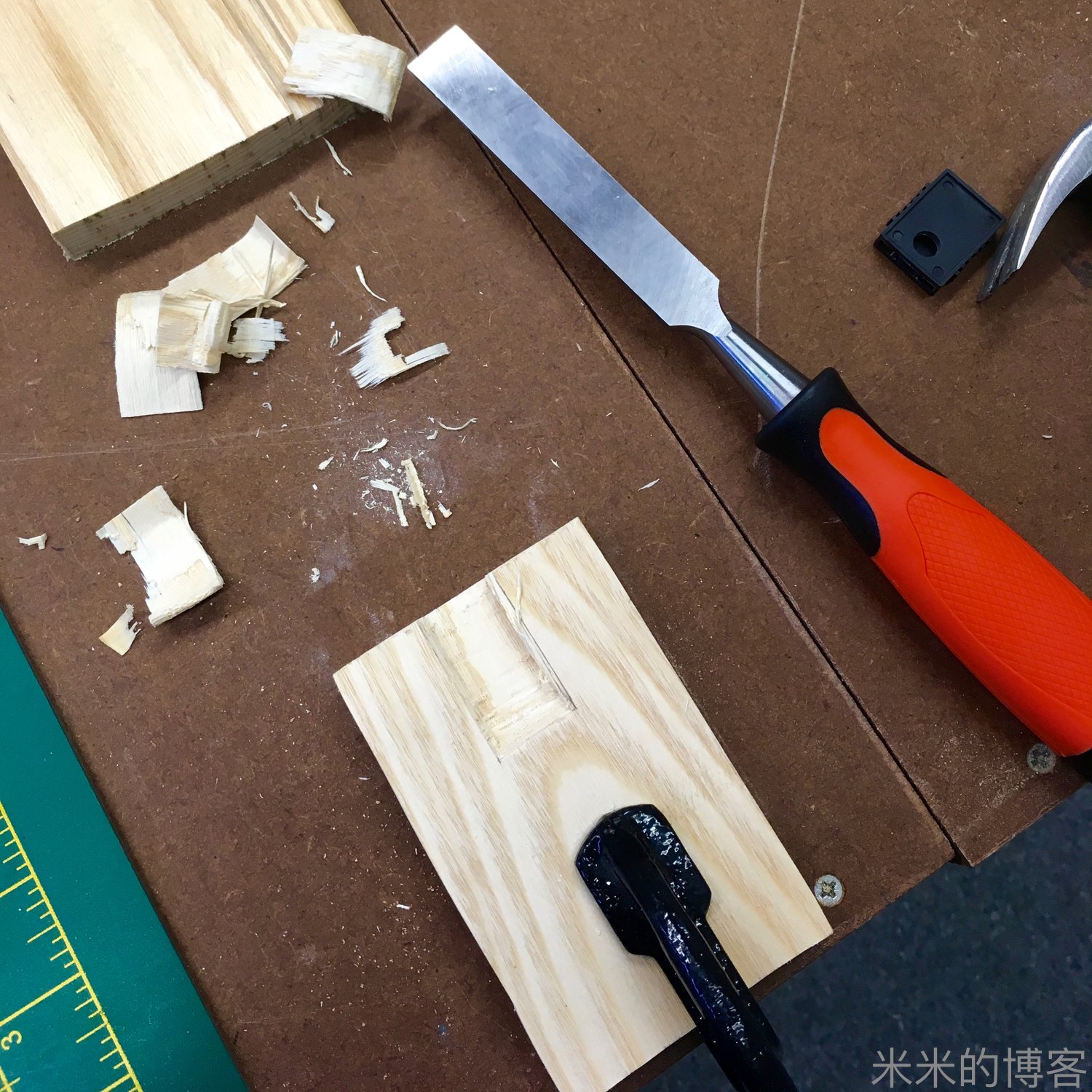 Teensy 编程完后,我准备制作一个隐藏摩尔斯电键下方的电子设备的木质底座,并且底座上有两个孔,用于连接 Teensy 到摩尔斯电键的电线。为啥选木材而不是 3D 打印呢?其实不是美观不美观的问题,而是因为用 3D 打印出来的底座都适配失败了。