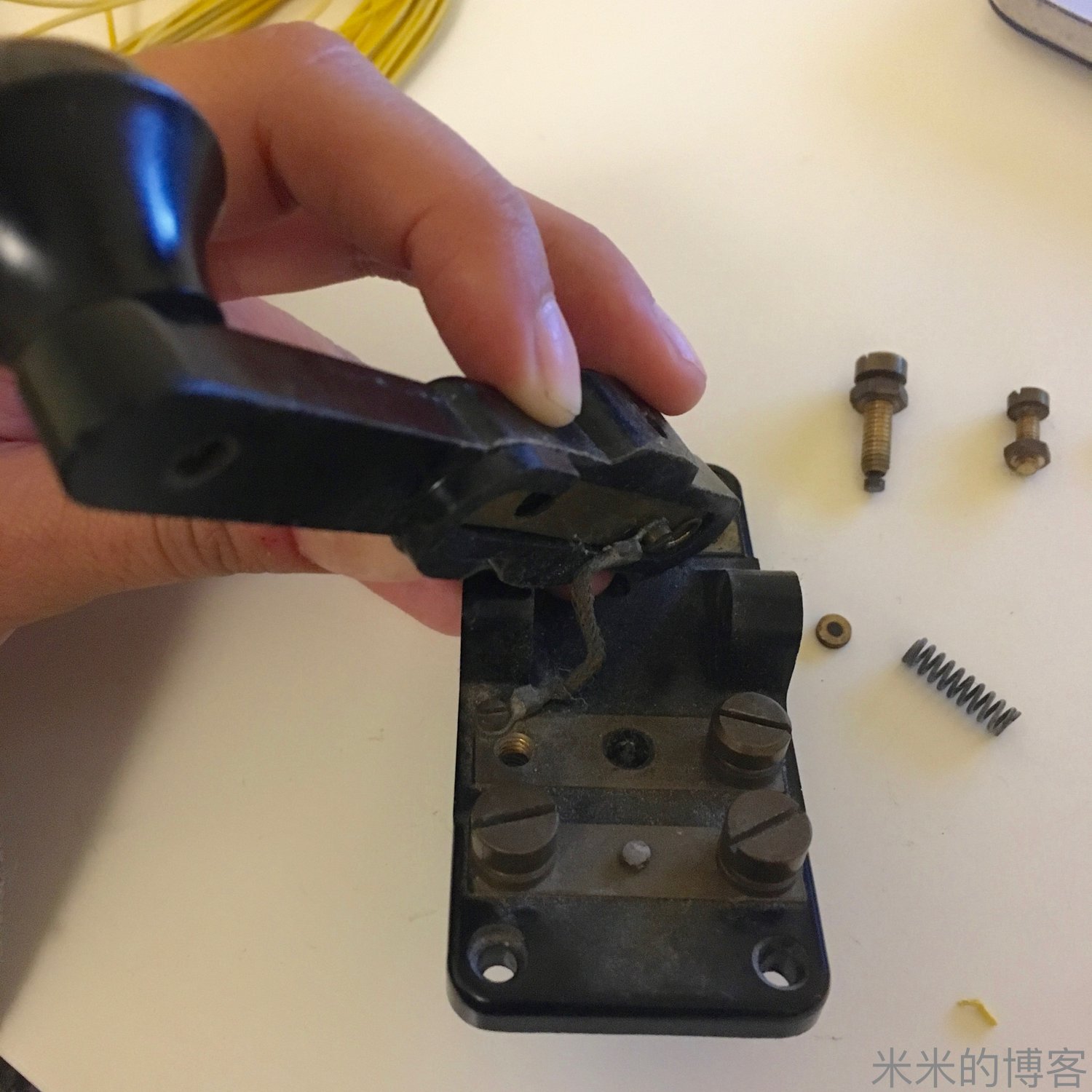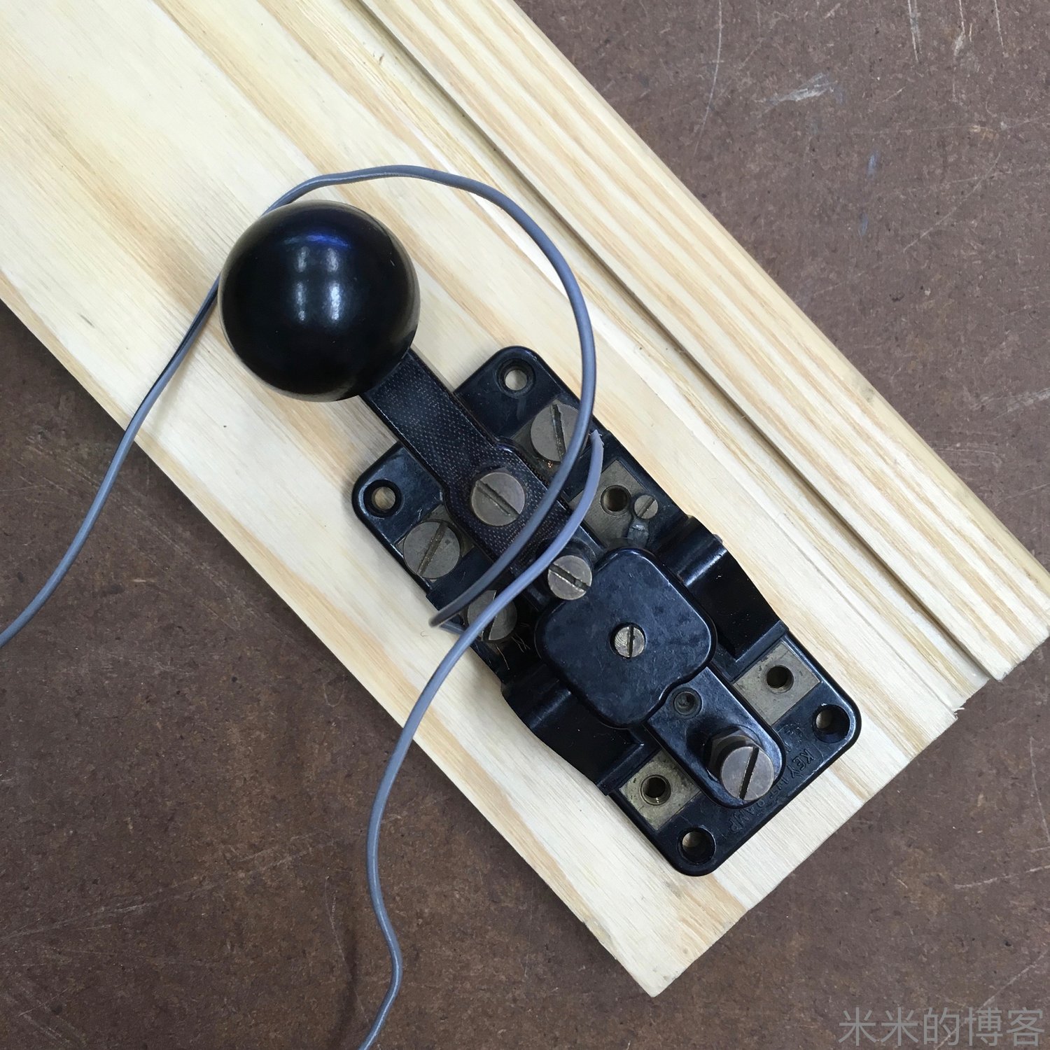摩尔斯电键积了很多灰尘,而且装在一个很丑的塑料底座上,因此我准备把所有东西都拆开,把摩尔斯电键清洁干净。