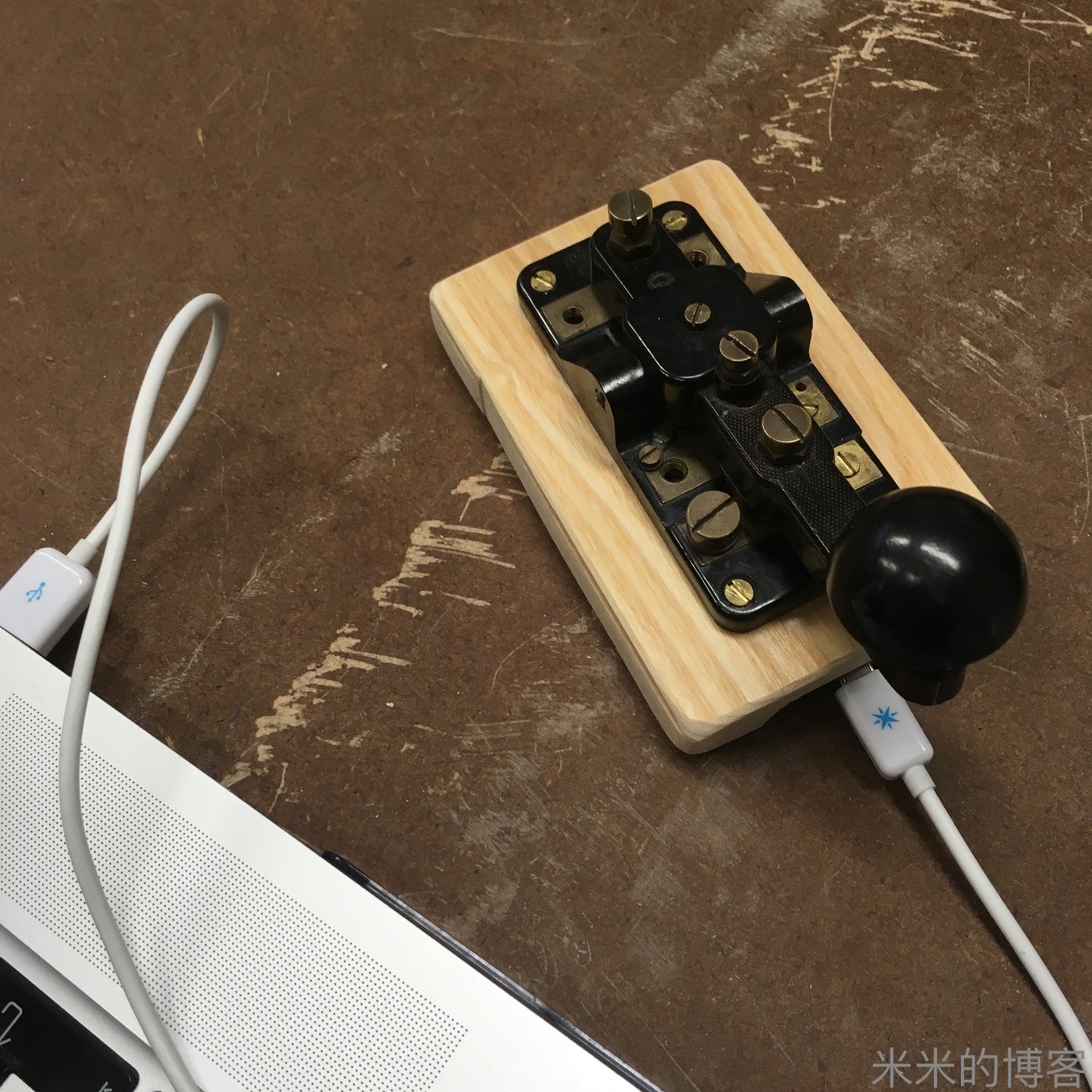 背景:打从记事以来,我就生活在设计精美的模拟设备的环境中,比如旋转式拨号电话,打字机和唱片机。我一直有把这些大部分现在不常用的东西转换成数字设备的想法,而这其中,老爸的旧摩尔斯电键看起来像是一个简单的项目。