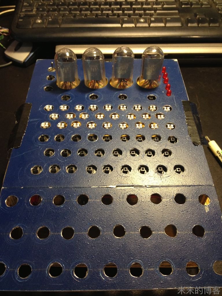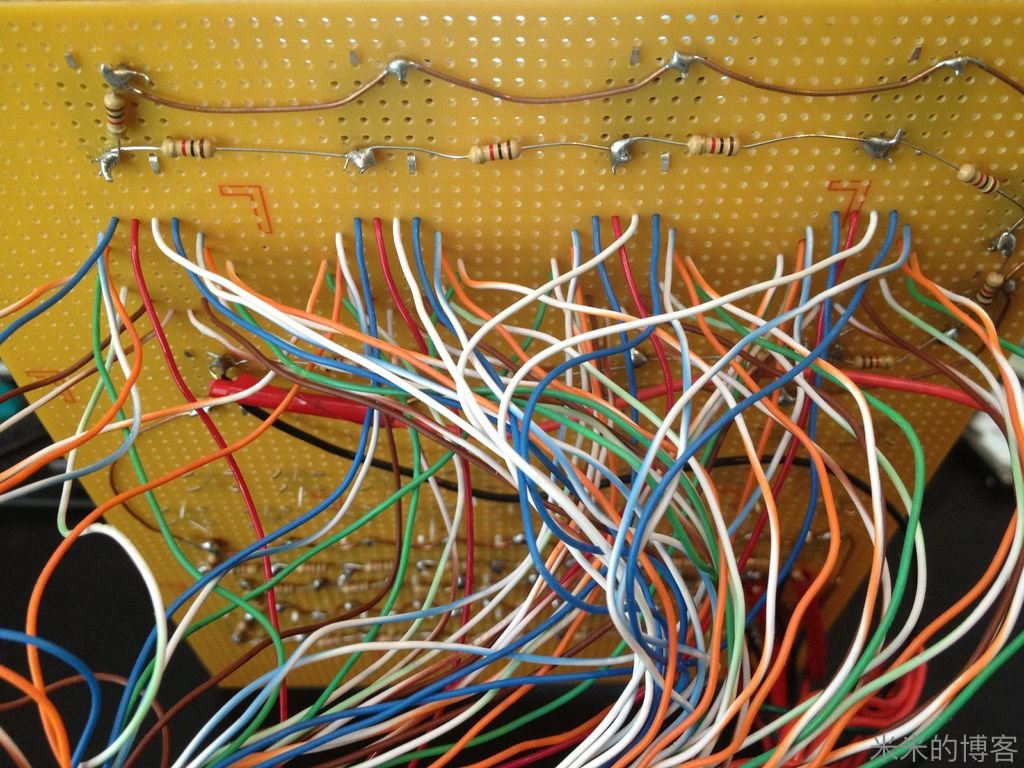 当初我们的决定是使这些 16 段 LED 显示看起来像老式电子管的感觉,增加了不少焊点,「巨焊」!