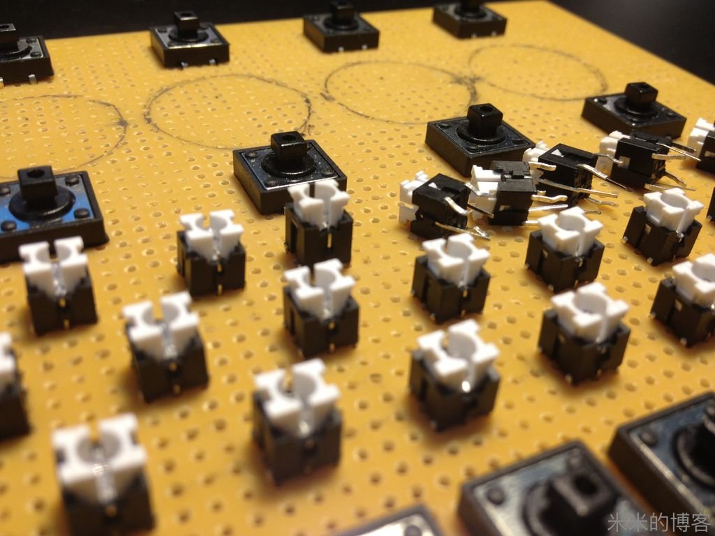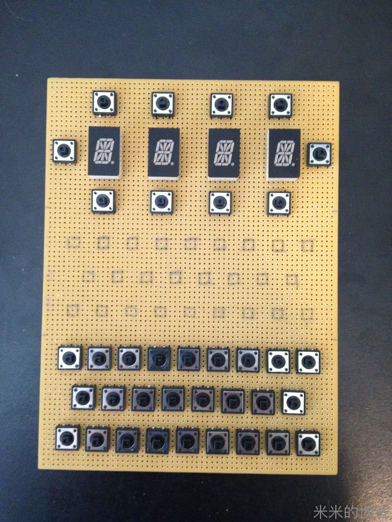 好吧,在单一作品身上,我从没焊接如此多次。16 段显示的 18 个针脚,还有 26 个字母键乘以每个 4 个脚,外加 26 个键盘灯,一些其他 LED,一个三掷开关,真乃「成吉思焊」。