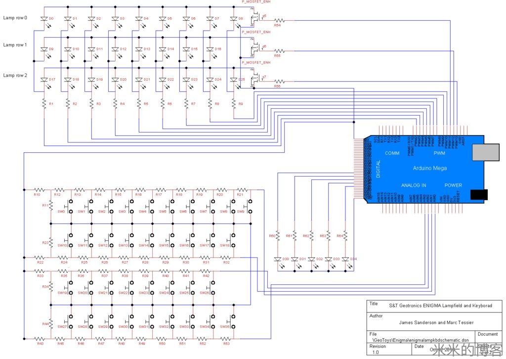 这个第一台全功能开源完美 Enigma 机复制品是根据 sketchsk3tch 写的《Kid's Game to Arduino Enigma Machine(从儿童玩具到 Arduino 恩尼格玛机)》所作。