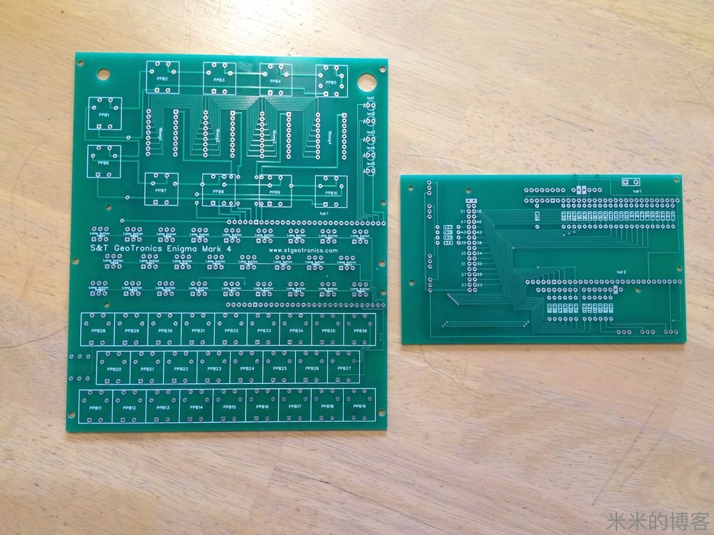 如果有足够的利润,我们将研发能够使全功能 Enigma 机复制品装载更为容易的印刷电路板。请登陆 http://www.stgeotronics.com 查询商品上架与否、价格、下单或预订吧。电路图已经发布了,印刷电路也已进入开发阶段,即将内测。