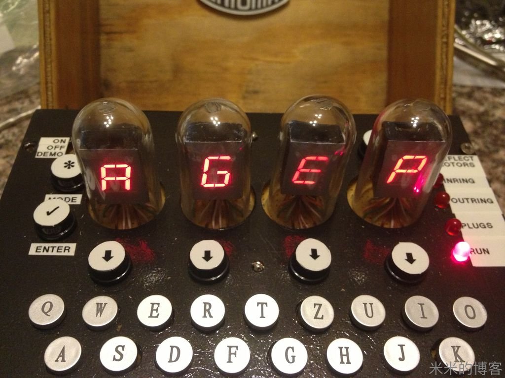 在模式 0、默认模式,Enigma 机仅仅是一台普通打字机,以跑马灯方式显示它的型号。