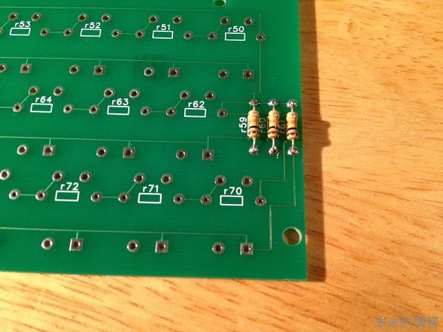 所有 LED 电阻都是 470 欧,而开关电阻则都是 1 千欧。