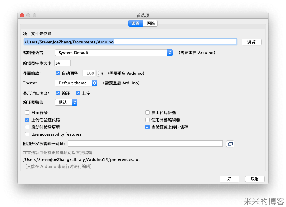 这时可以开启详细报错来 debug。打开 Arduino IDE 的首选项,勾选「显示详细输出」后的两个选项。