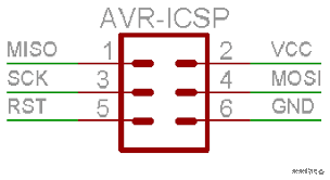 首先,我们来确定要连接的引脚 ——ICSP 接口。ICSP 即 In Circuit Serial Programming,它的针脚定义如下图所示