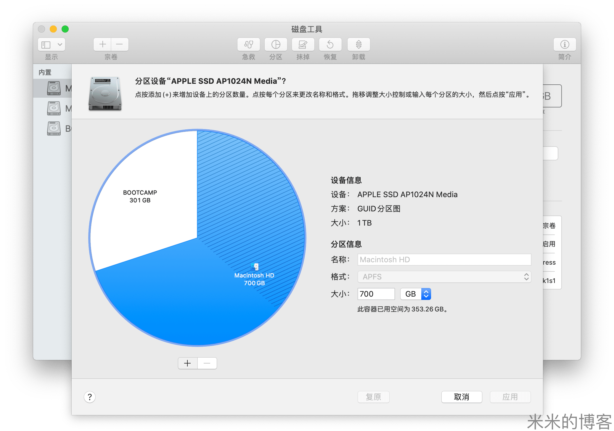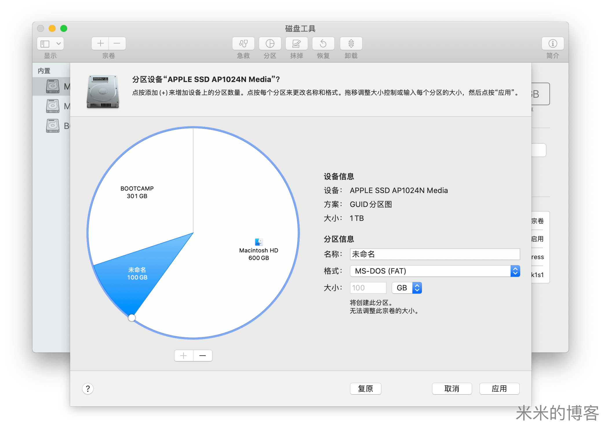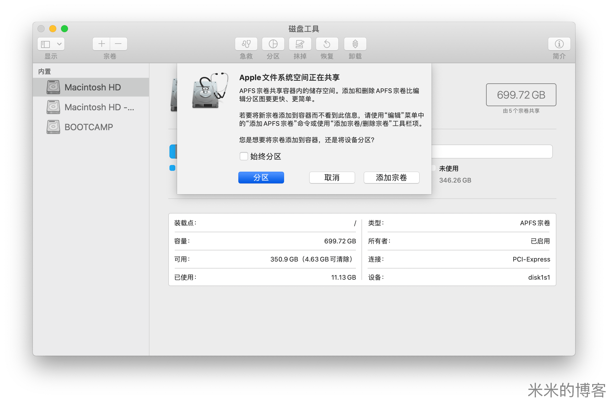从 APFS 中划分空间给 Bootcamp