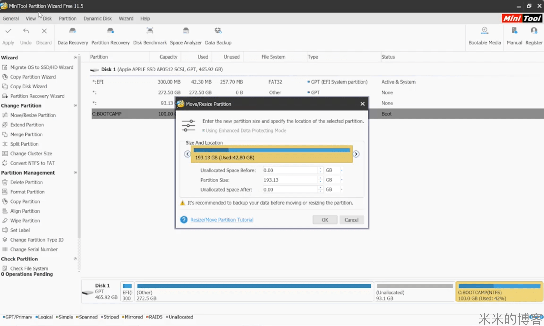 调整 Bootcamp 分区大小